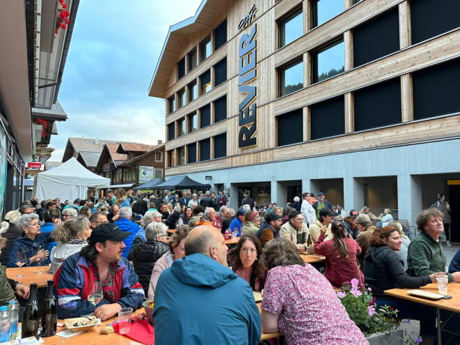 Les 19 et 16 juillet ainsi que les 2 et 9 août, les visiteurs et les habitants de la région se retrouveront au "Aabesitz" ; pour une rencontre conviviale le long de la Dorfstrasse, une rue sans circulation. Parmi les nombreuses offres de restauration, le Revier Burger ne doit bien sûr pas manquer. Nous tenons un stand de nourriture juste devant ton Revier Mountain Lodge à Adelboden.